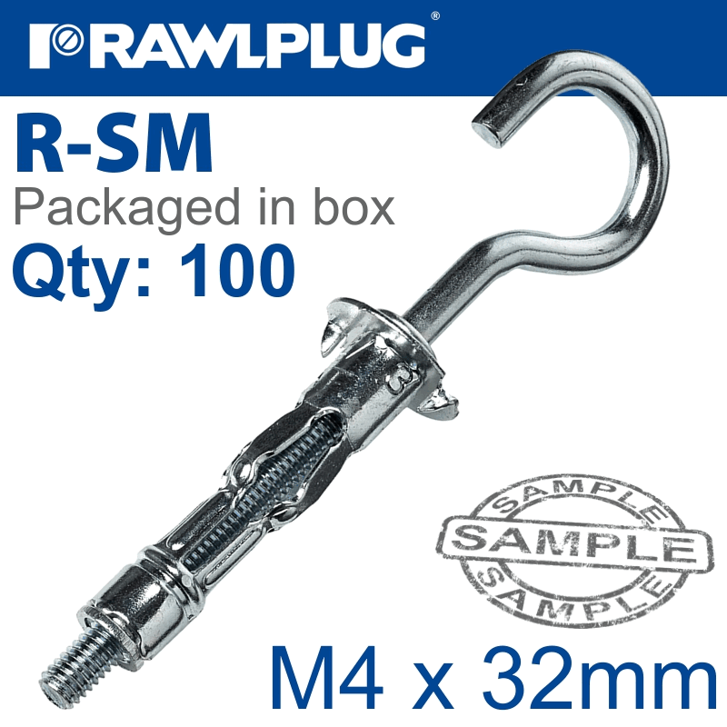 RAWLPLUG Interset Fixing Drywall Round Hook M4X32Mm X100-Box