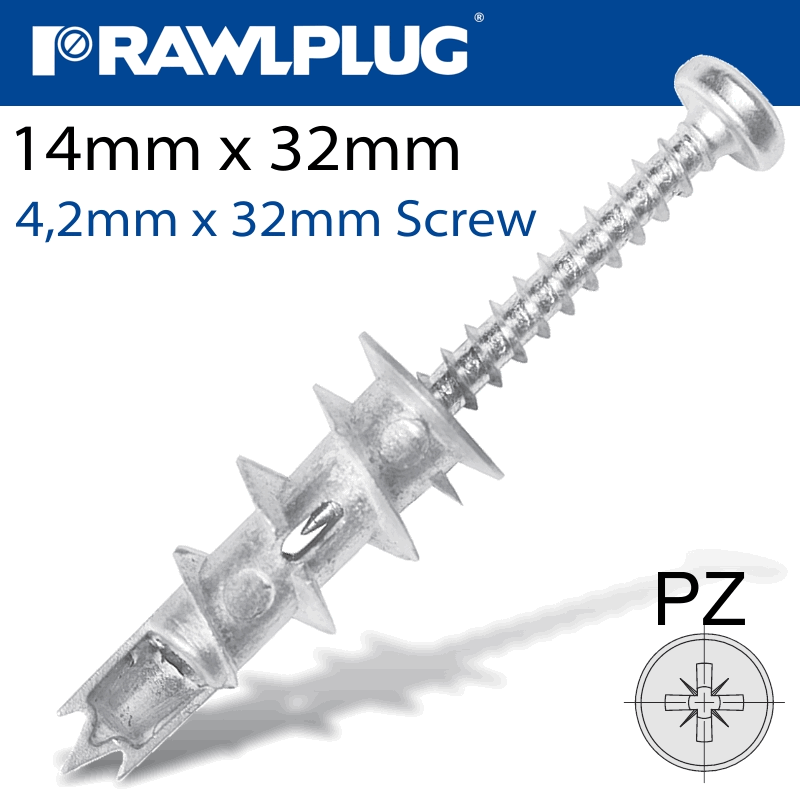 RAWLPLUG Metal Self Drilling Fixing+Screws 14Mmx32Mm X100-Box
