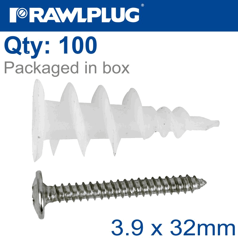 RAWLPLUG Self Drill Plasterboard With Screw 100 Psc Per Tub