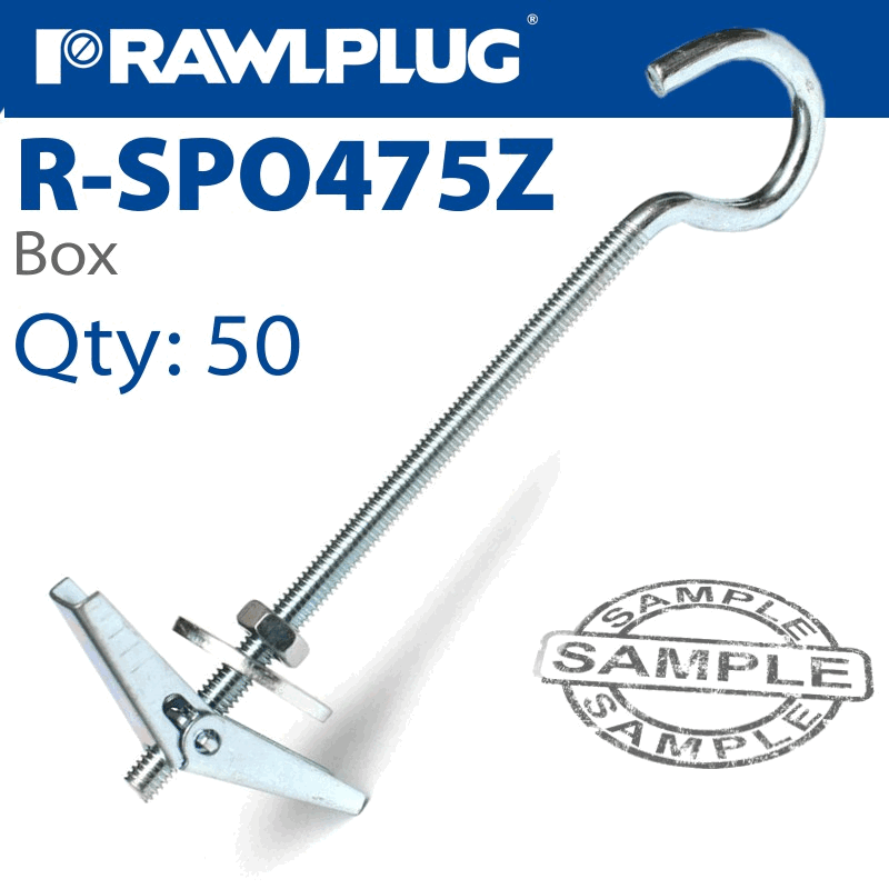 RAWLPLUG Spring Toggle With M4X75 Round Hook Box Of 50
