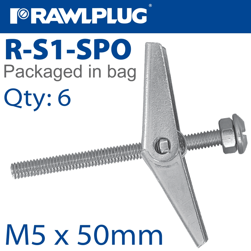 RAWLPLUG Spring Toggle+Screw M5X50Mm X6-Bag