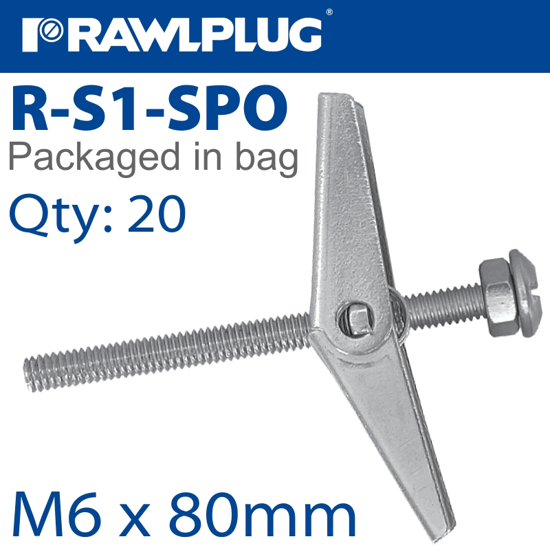 RAWLPLUG Spring Toggle+Screw M6X80Mm X20-Bag