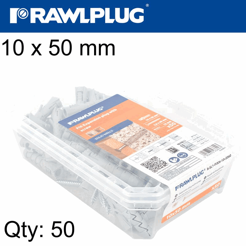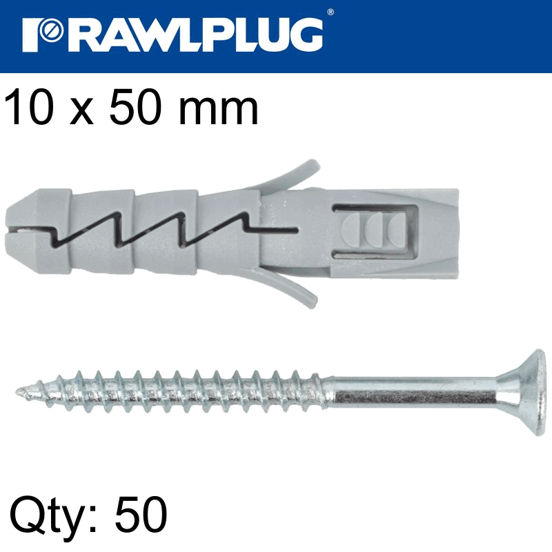 RAWLPLUG Expansion Plug Fix 10X50Mm With Screw 50Psc Per Tub