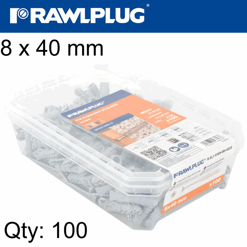 RAWLPLUG Expansion Plug Fix 8X40Mm With Screw 100Psc Per Tub