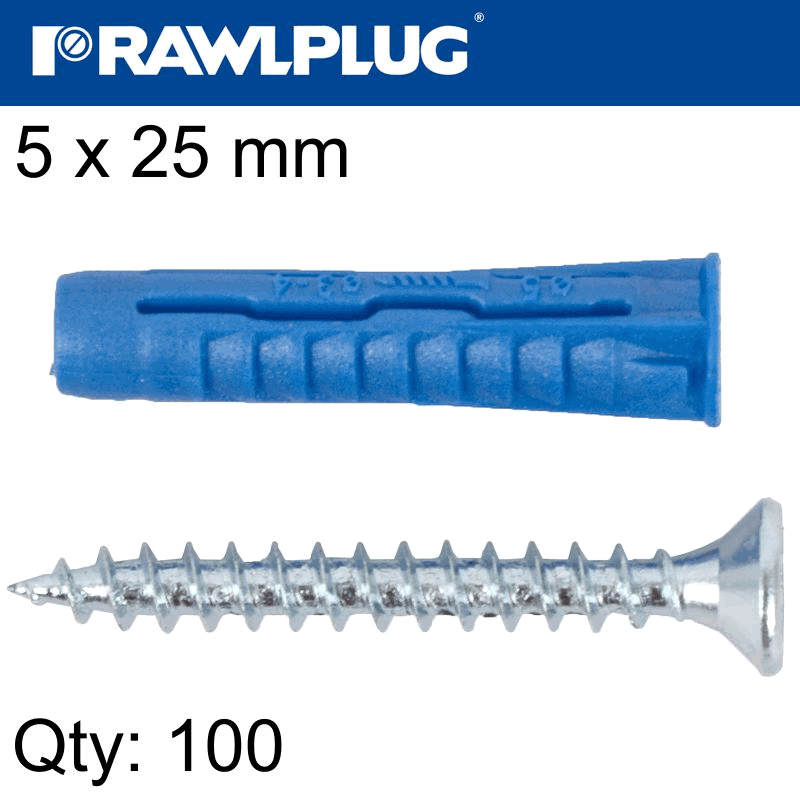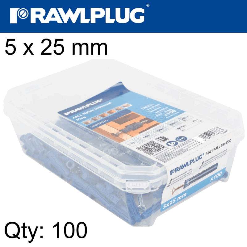 RAWLPLUG Universal Plug 4All 5 X 25Mm With Screw 100 Psc Per Tub