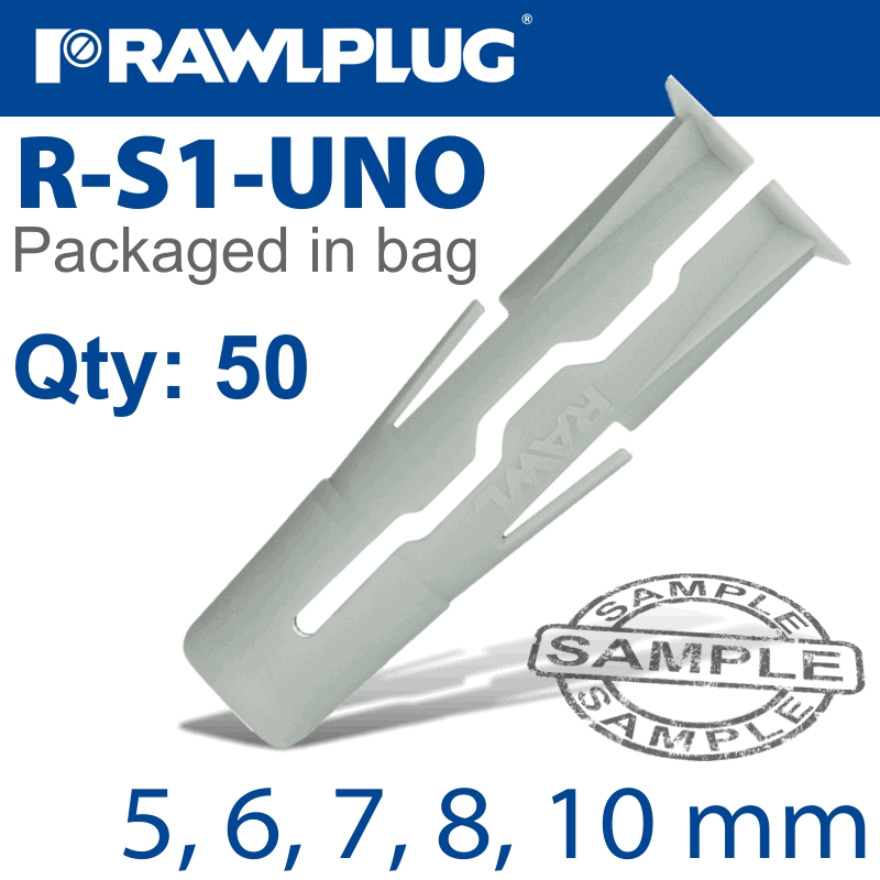RAWLPLUG Universal Plug Assorted 5 6 7 8 10Mm X50-Bag
