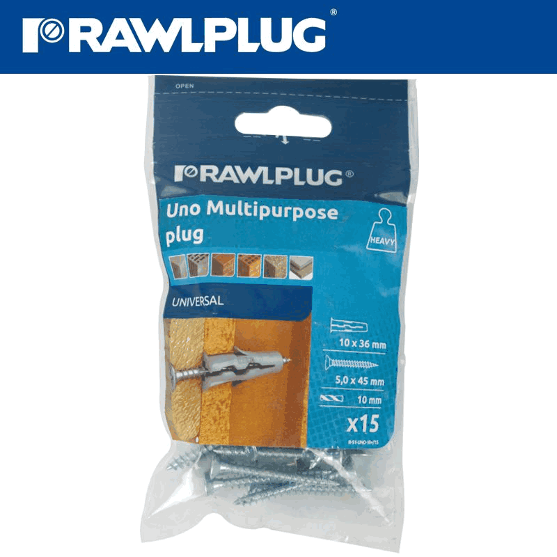 RAWLPLUG Universal Plug With Screw 10X36Mm X15 Per Bag