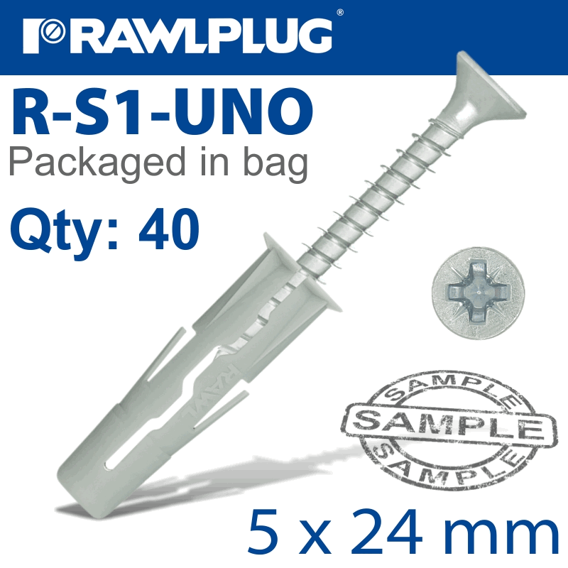 RAWLPLUG Universal Plug With Screw 5X24Mm 40 Per Bag