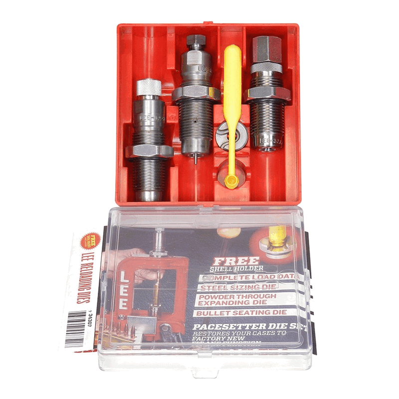 Lee 44/40 Steel 3-Die Set. Includes Full Length Sizing Die, Bullet Seating Die, Powder Through Expanding Die, Universal Shell Holder, Powder Dipper and Instructions/Load Data