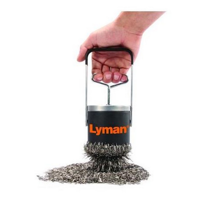 Lyman's Stainless Steel Pin Transfer Magnet is the answer for separating your cases from the media pins used in rotary tumblers. Simply pass the magnet over the mixture of cases and pins and the pins will be pulled out and grabbed by the magnet. To release the pins, just pull up on the handle.