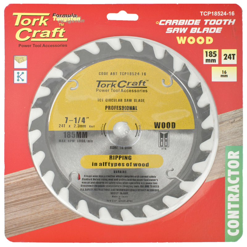 Tork Craft Blade Contractor 185 X 24t 16mm Circular Saw Tct