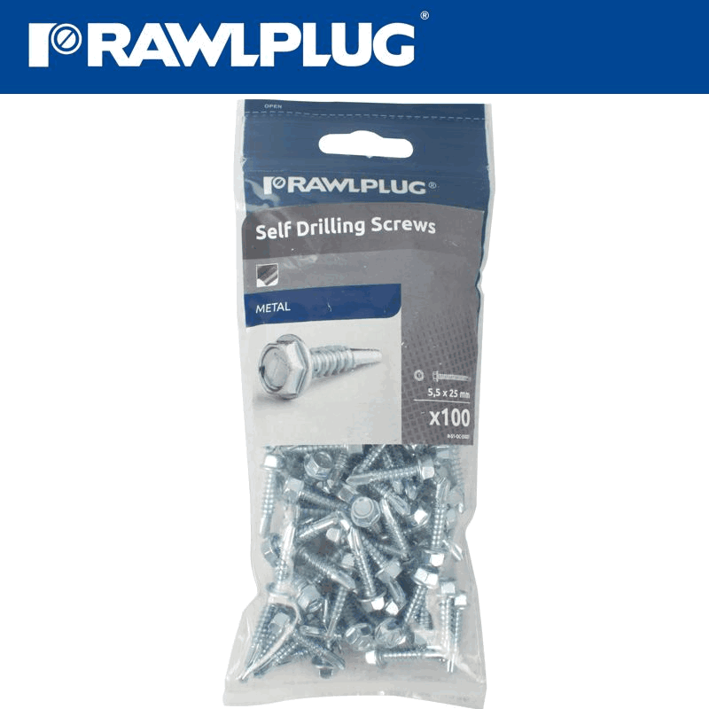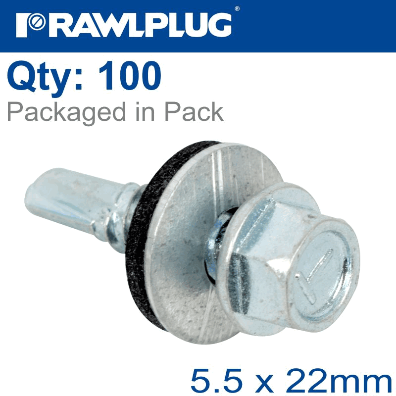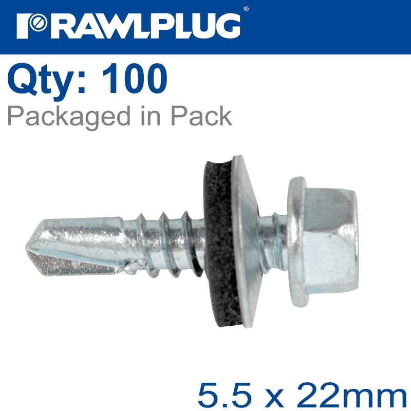 RAWLPLUG Self Drilling Screws 5,5X22Mm With Washer T14, 100Pcs