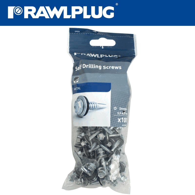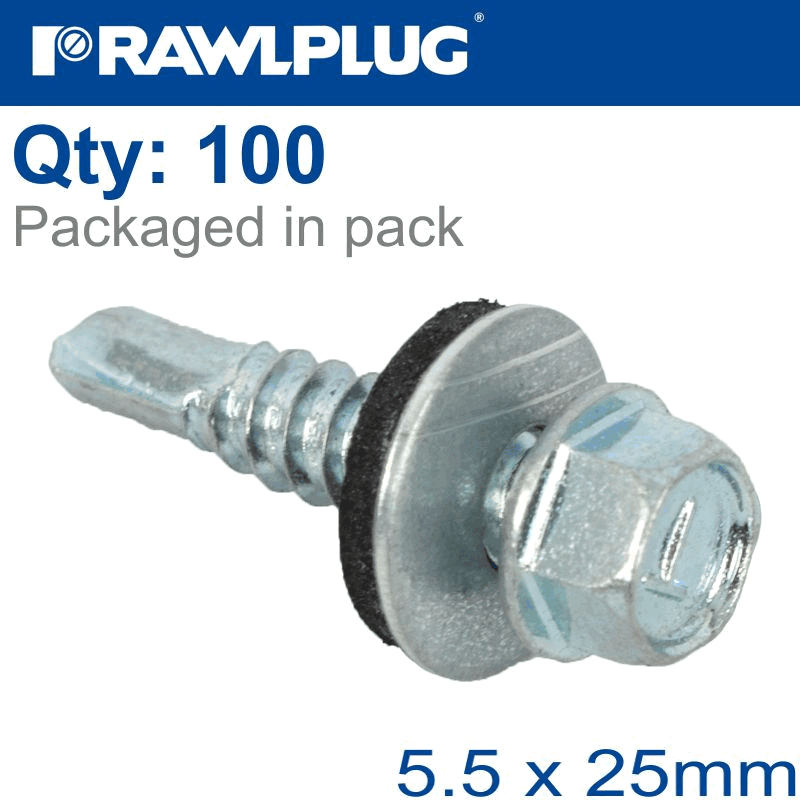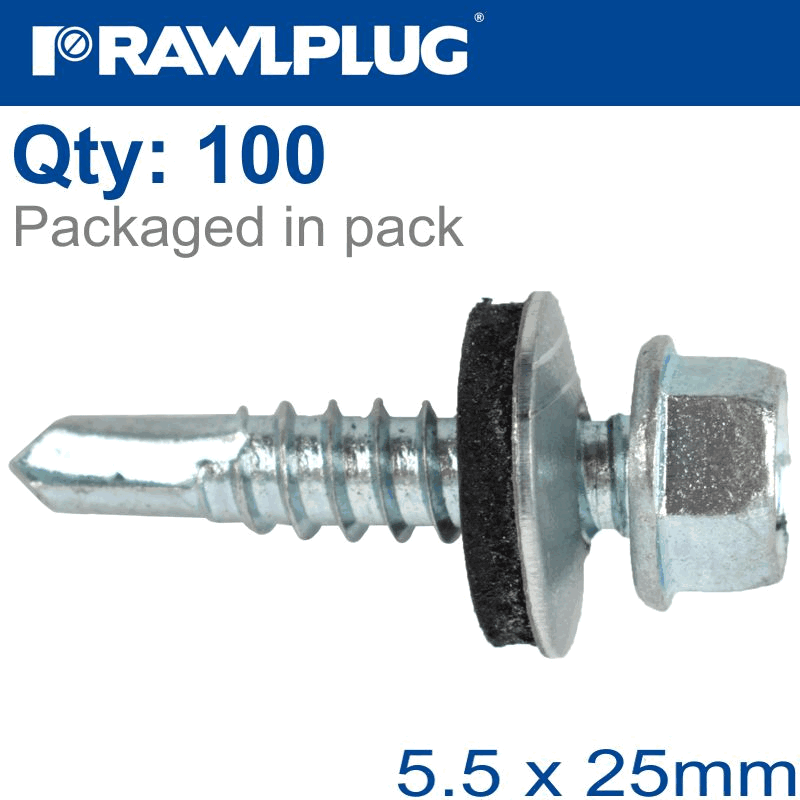 RAWLPLUG Self Drilling Screws 5,5X25Mm With Washer T14, 100Pcs