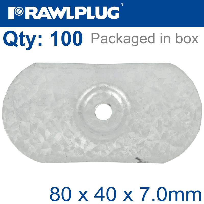 RAWLPLUG Oval Steel Washer 80Mmx40Mmx7.0Mm Alum Zinc Coating Box Of 100