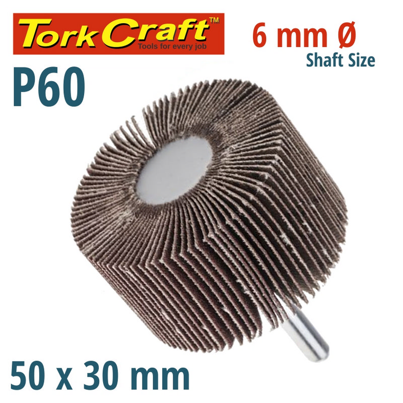 Tork Craft Flap Wheel 50 X 30 X 6mm Shaft 60 Grit Per Each (20 Per Box)
