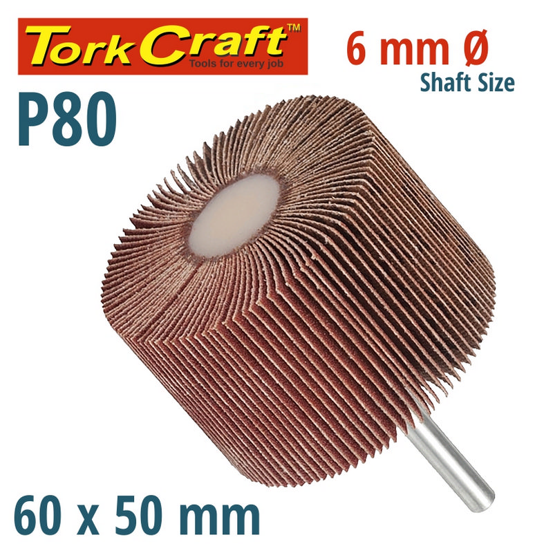 Tork Craft Flap Wheel 60 X 50 X 6mm Shaft 80 Grit Per Each (8 Per Box)
