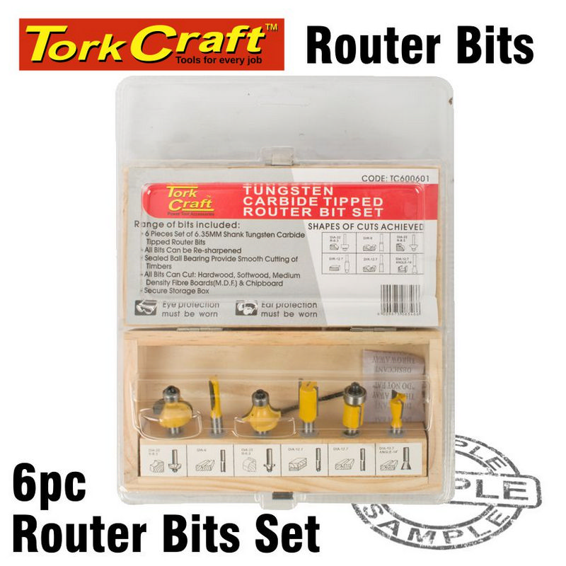 Tork Craft Router Bit Set 6pce Wooden Box