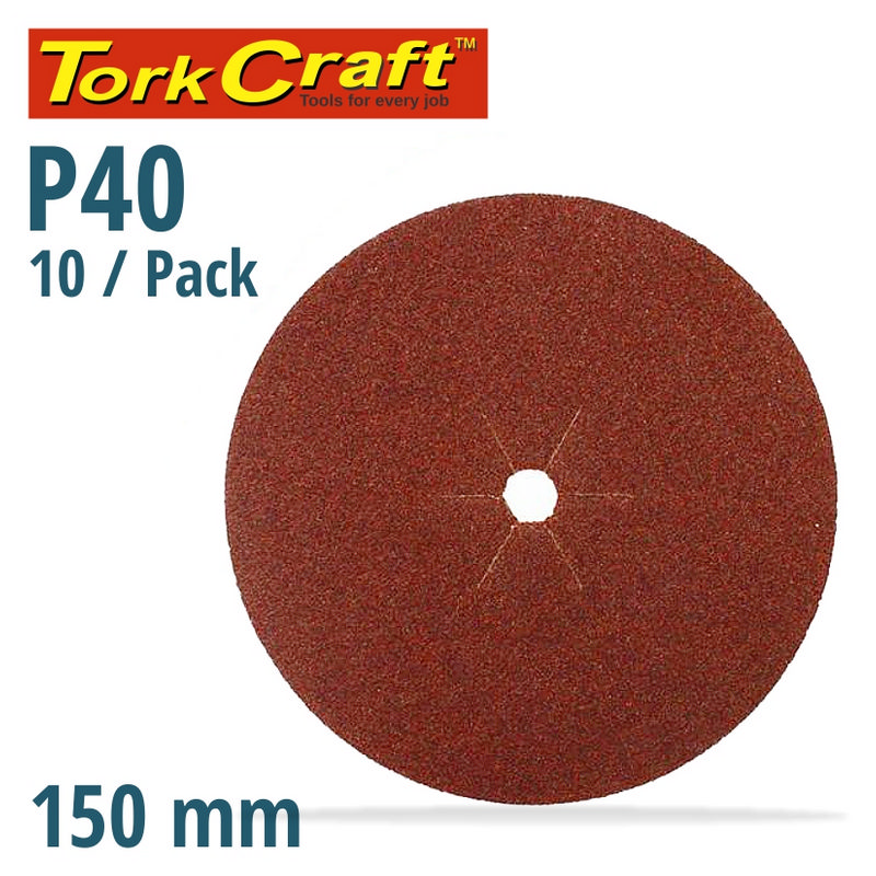 Tork Craft Sanding Disc 150mm 40 Grit Centre Hole 10/Pk