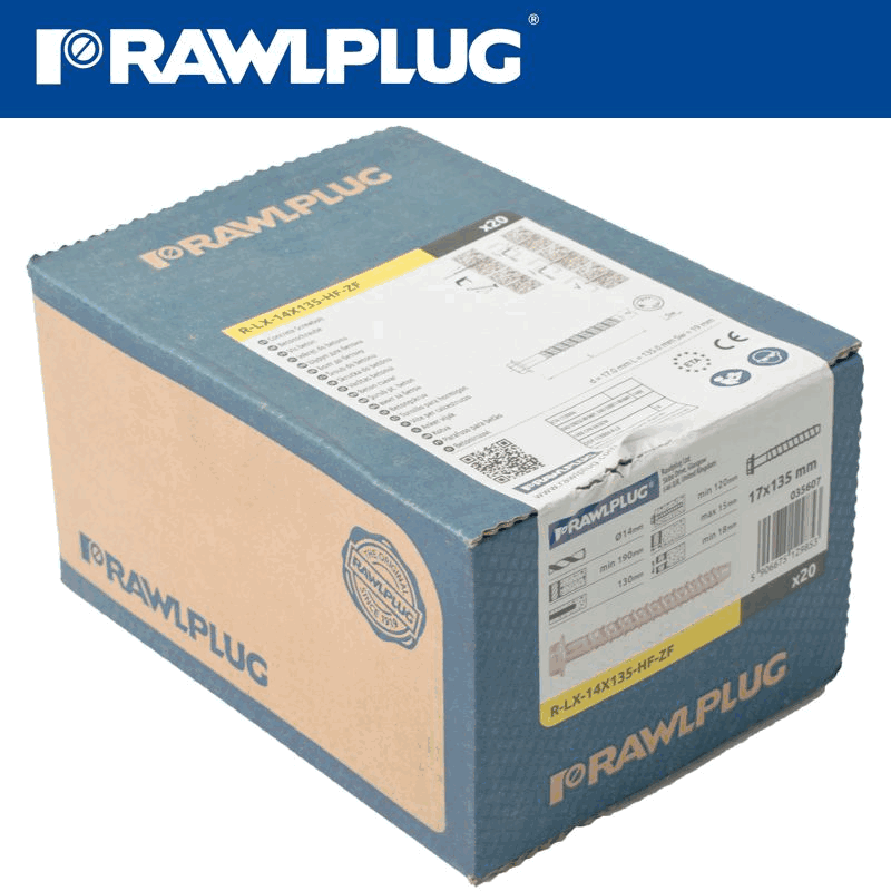RAWLPLUG Concrete Screwbolt M14 17X135Mm Hex Flange Zinc Fl X20-Box