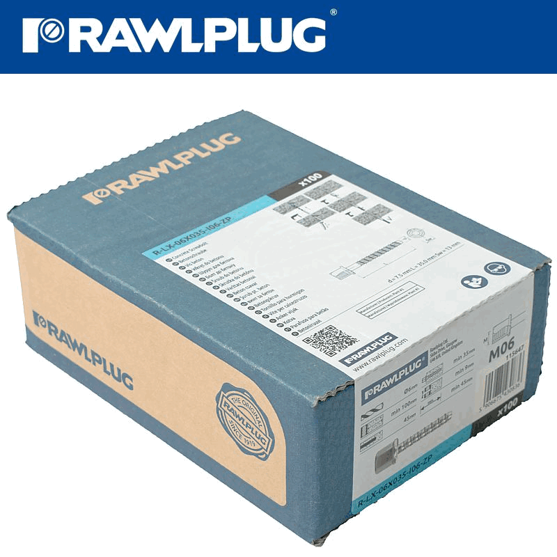 RAWLPLUG Concrete Screwbolt M6 7.5X35Mm Internal Thread M6 Zinc Pl X100-Box