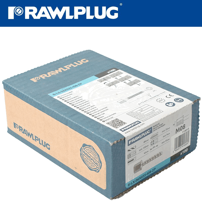 RAWLPLUG Concrete Screwbolt M6 7.5X35Mm Internal Thread M8. Zinc Pl X100-Box