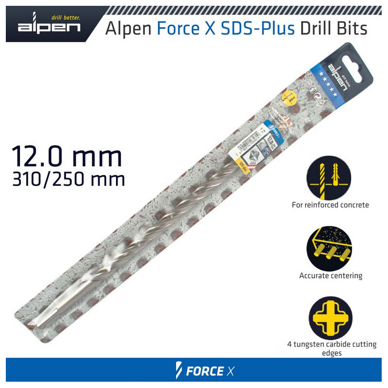 Alpen Force X 12.0 X 310/250 Sds-Plus Drill Bit X4 Cutting Edges