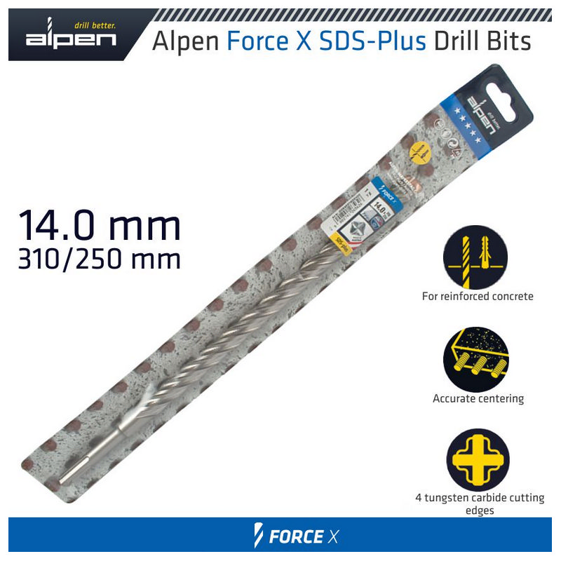 Alpen Force X 14.0 X 310/250 Sds-Plus Drill Bit X4 Cutting Edges