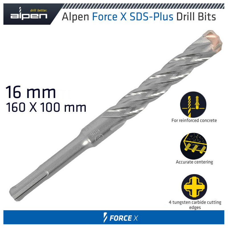 Alpen Force X 16.0 X160/100 Sds-Plus Drill Bit X4 Cutting Edges