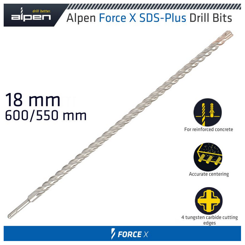 Alpen Force X 18.0 X 600/550 Sds-Plus Drill Bit X4 Cutting Edges