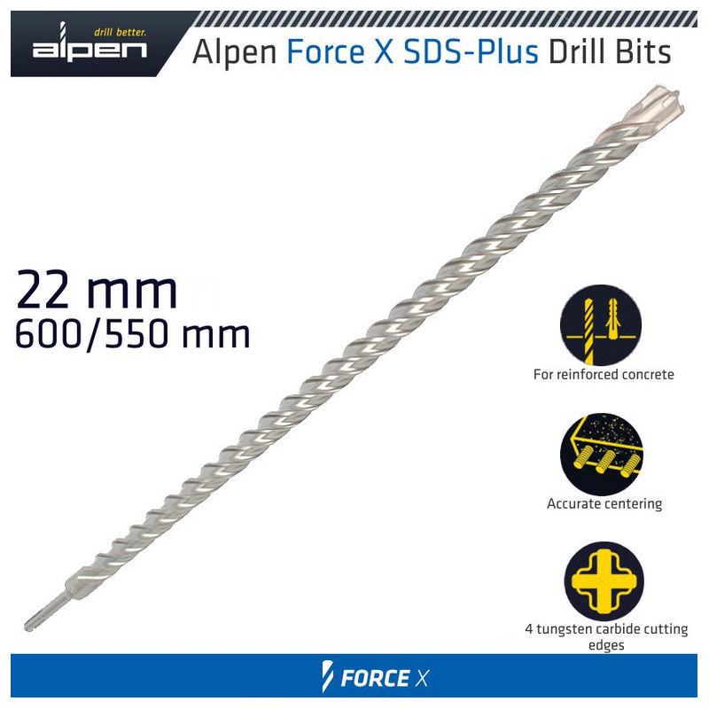 Alpen Force X 22.0 X 600/550 Sds-Plus Drill Bit X4 Cutting Edges