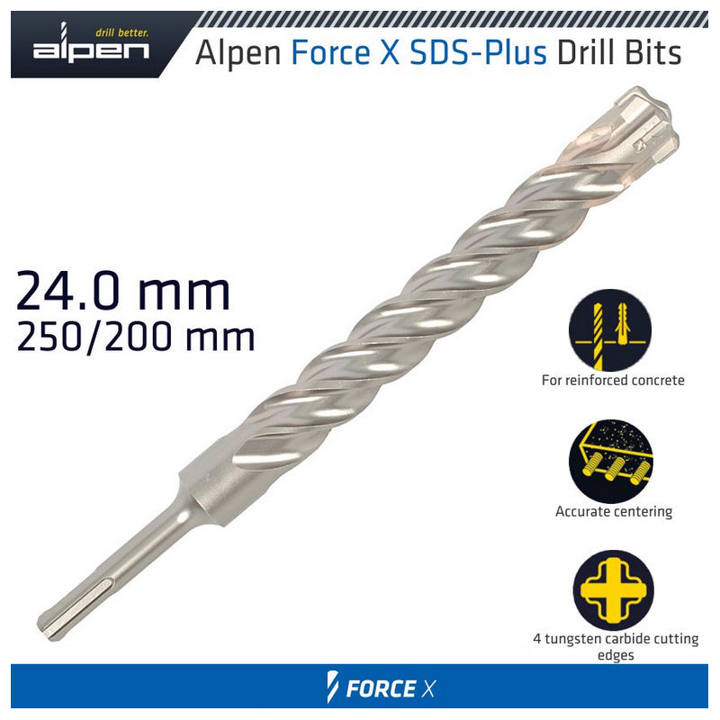 Alpen Force X 24.0 X 250/200 Sds-Plus Drill Bit X4 Cutting Edges