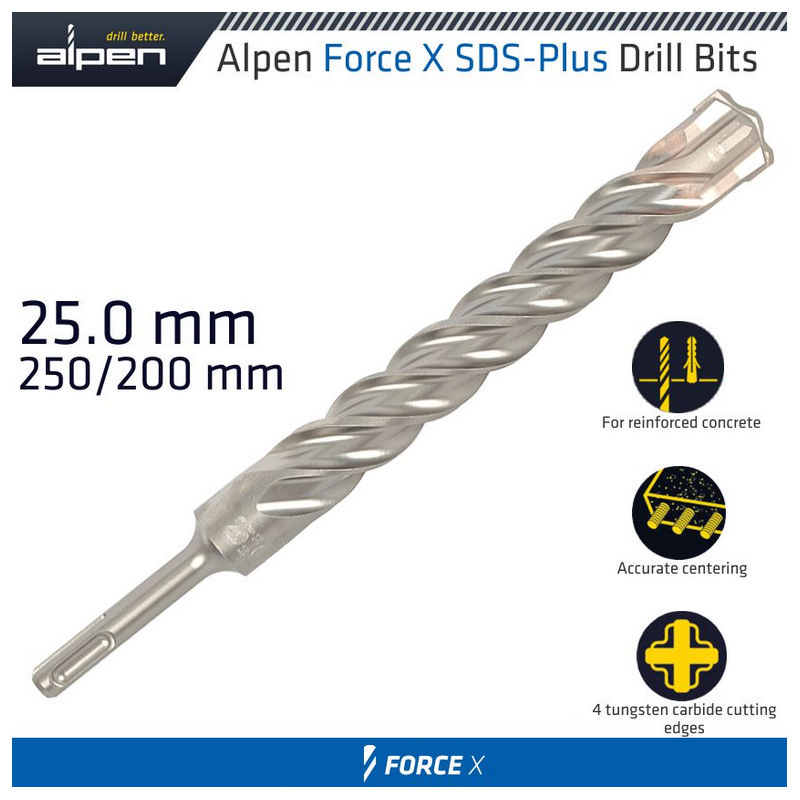 Alpen Force X 25.0 X 250/200 Sds-Plus Drill Bit X4 Cutting Edges