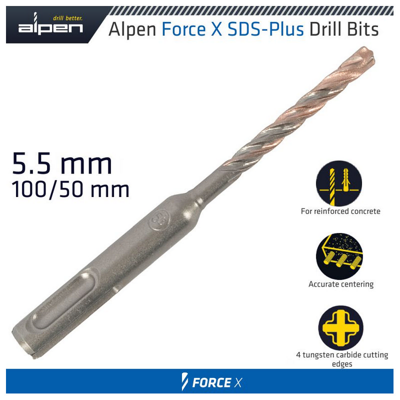 Alpen Force X 5.5 X 110/050 Sds-Plus Drill Bit X4 Cutting Edges