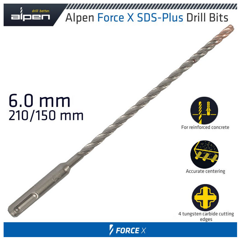 Alpen Force X 6.0 X 210/150 Sds-Plus Drill Bit X4 Cutting Edges
