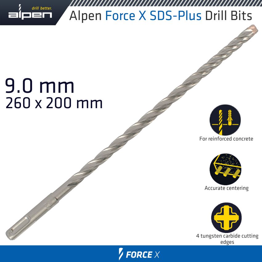 Alpen Force X 9.0 X 260/200 Sds-Plus Drill Bit X4 Cutting Edges