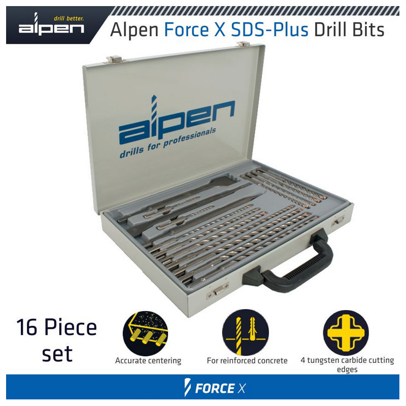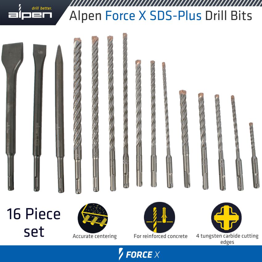 Alpen Force X Sds-Plus Kit 16 16 Pcs. Drills 110Mm 5-6 160Mm 6-8-10-12 210M