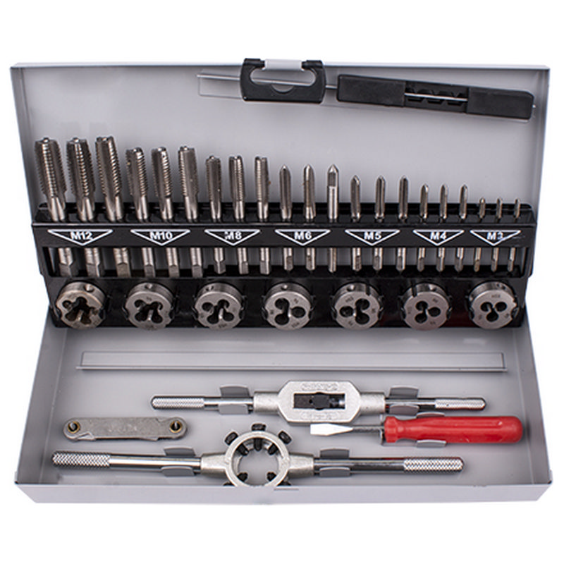 TAP AND DIE SET 32PCE 3-12MM HSS IN STEEL CASE