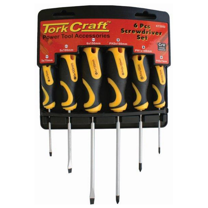 Tork Craft Screw Driver Set 6 Pce With Wall Mountable Rack Ph Sl