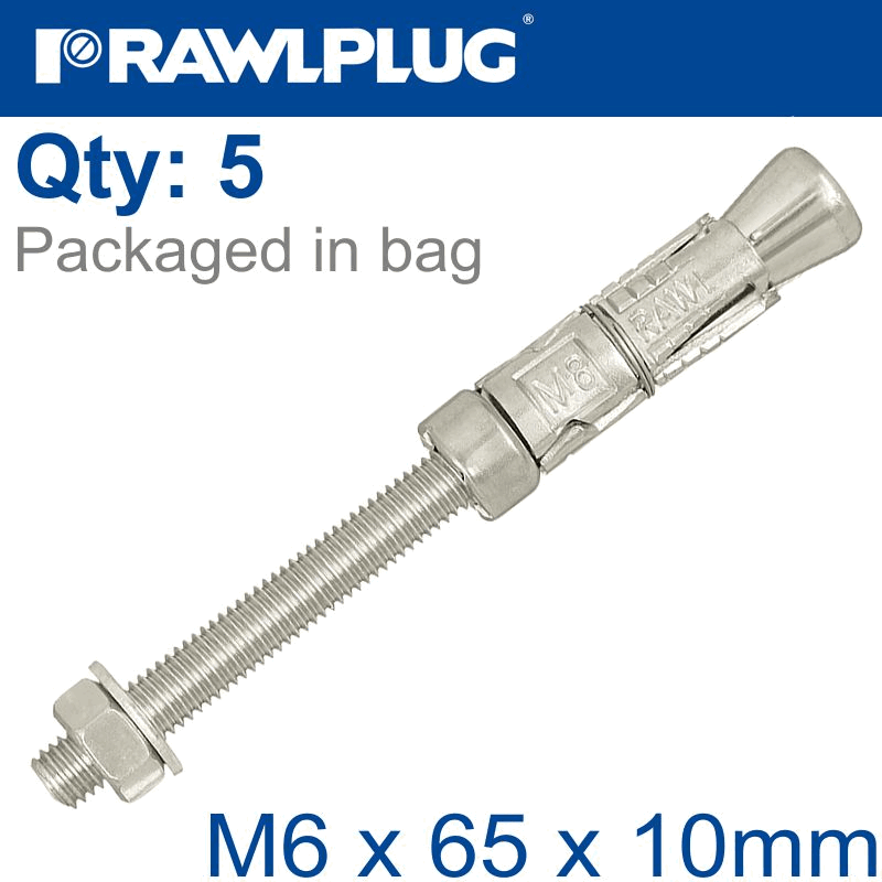 RAWLPLUG Projecting Bolt M6X65X10Mm X5 -Bag