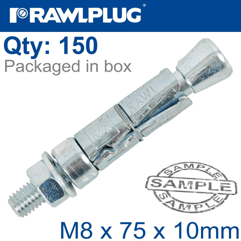 RAWLPLUG Projecting Bolt M8X75X10Mm X150 -Box