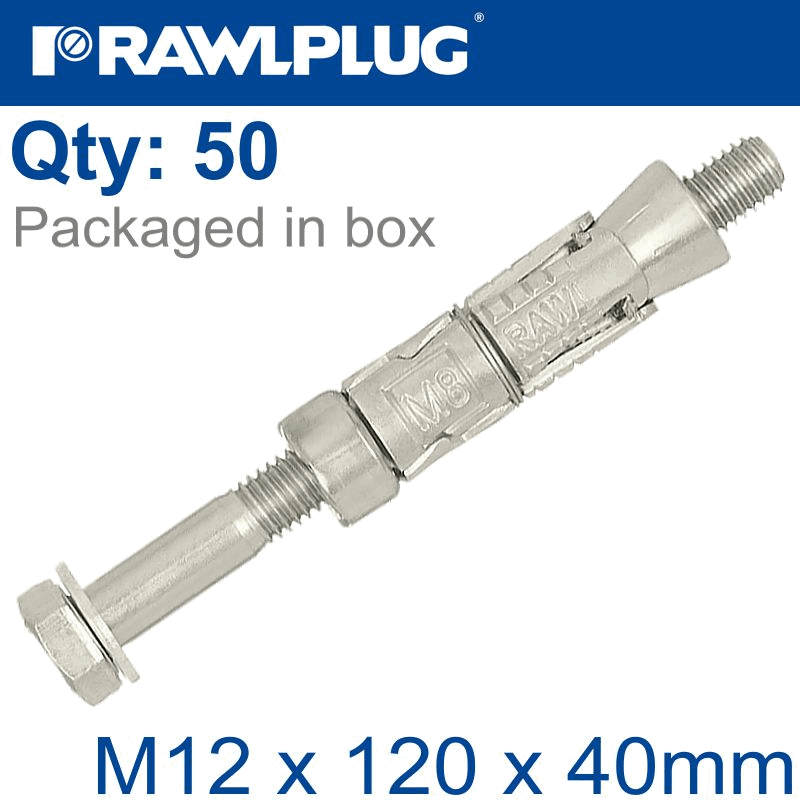 RAWLPLUG Rawlbolt M12X120X40Mm X25-Box (20Mm Hole)