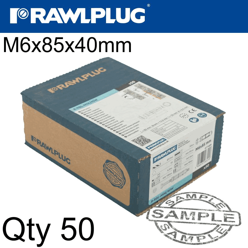 RAWLPLUG Rawlbolt M6X85X40Mm X50-Box (12Mm Hole)