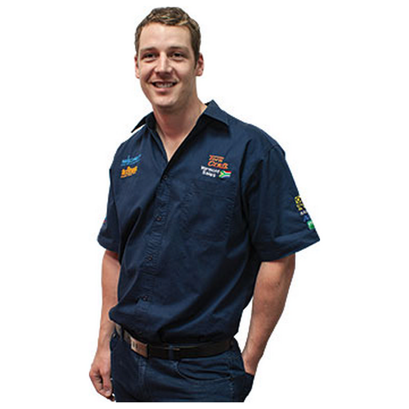The shirt represents the Vermont Sales company. The leading brands are embroidered on the sleeves and the chest.