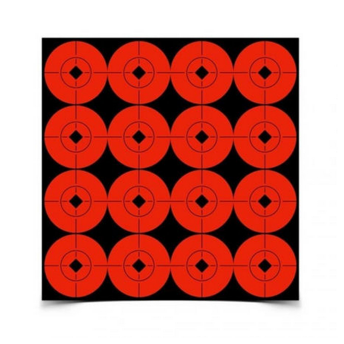 Convenient Target Spots® Self-Adhesive orange Targets create instant bull’s-eyes for all types of target practice. The high-contrast, radiant orange color lets you see a sharper sight picture and bullet holes more clearly for better scores and smaller groups.