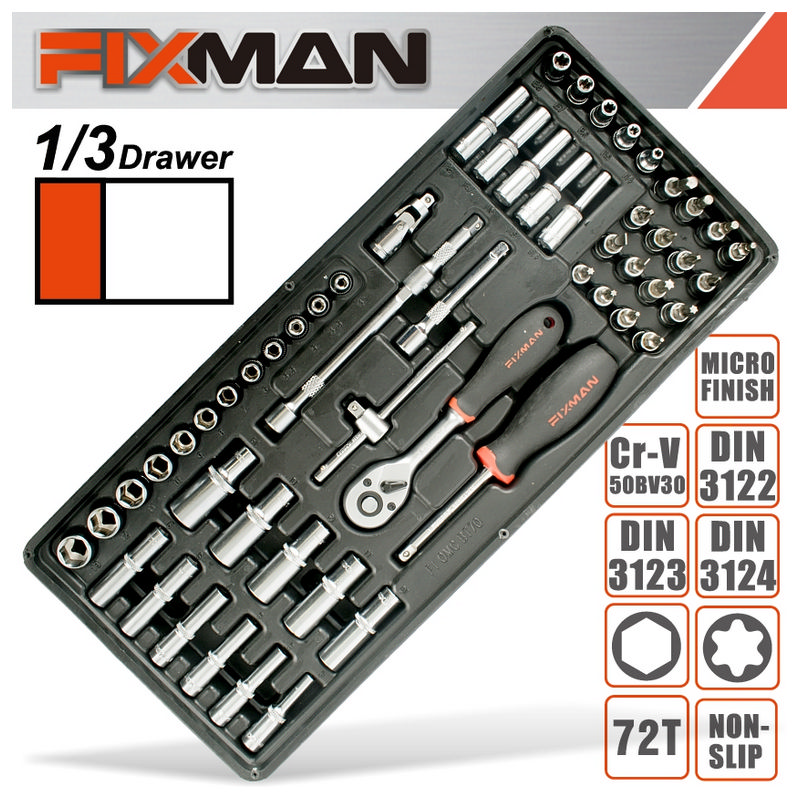 FIXMAN TRAY 60PC 1/4" DRIVE SOCKETS & ACCESSORIES
