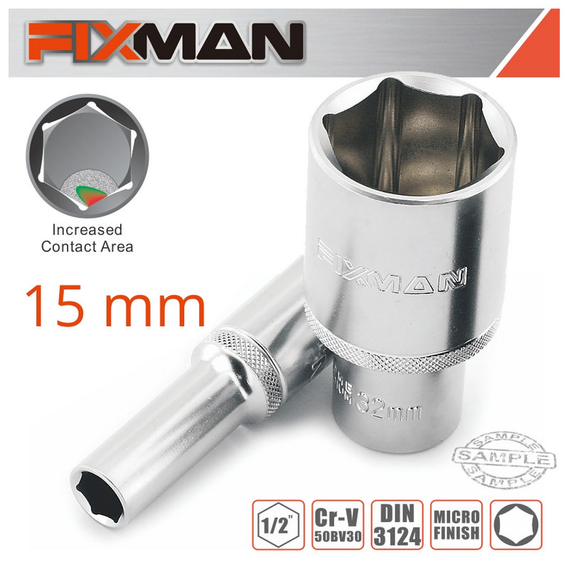 FIXMAN 1/2" DR DEEP SOCKET 15MM