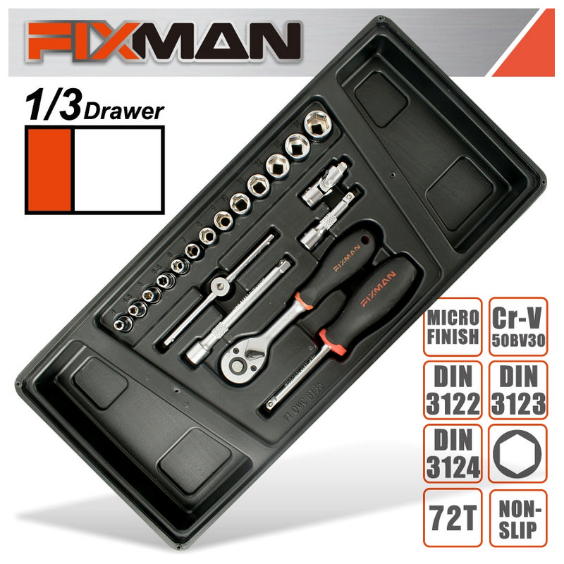 FIXMAN TRAY 19PC 1/4" DRIVE SOCKETS & ACCESSORIES