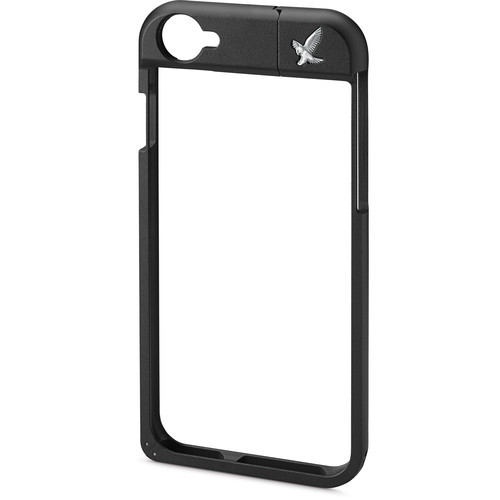 This Swarovski iPhone 6 Digiscoping Adapter connects your iPhone to most Swarovski Optik binoculars and spotting scopes using the appropriate adapter ring, and allows you to shoot photos and videos of your subject or views. Your phone installs into the adapter, the ring screws onto the adapter, and the ring fits tightly onto the eyepiece - all without tools or having to permanently modify your phone or optic. The adapter's black anodized aluminum frame can remain attached to your iPhone even when you're not digiscoping to provide edge protection. A lanyard attaches to the adapter to wear your phone around your neck so it's always close at hand and a quick-release buckle allows you to detach the phone and mount it without having to take the lanyard off. The adapter ring is not included and has to be purchased separately.