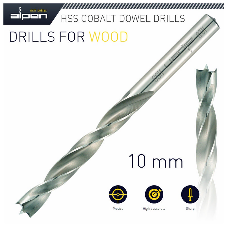 Alpen HSS Cobalt Wood Drill Bit 10mm