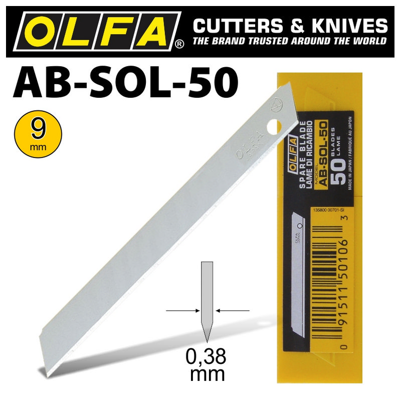 Olfa Blades Solid 9mm In Plastic Case 50/Pk